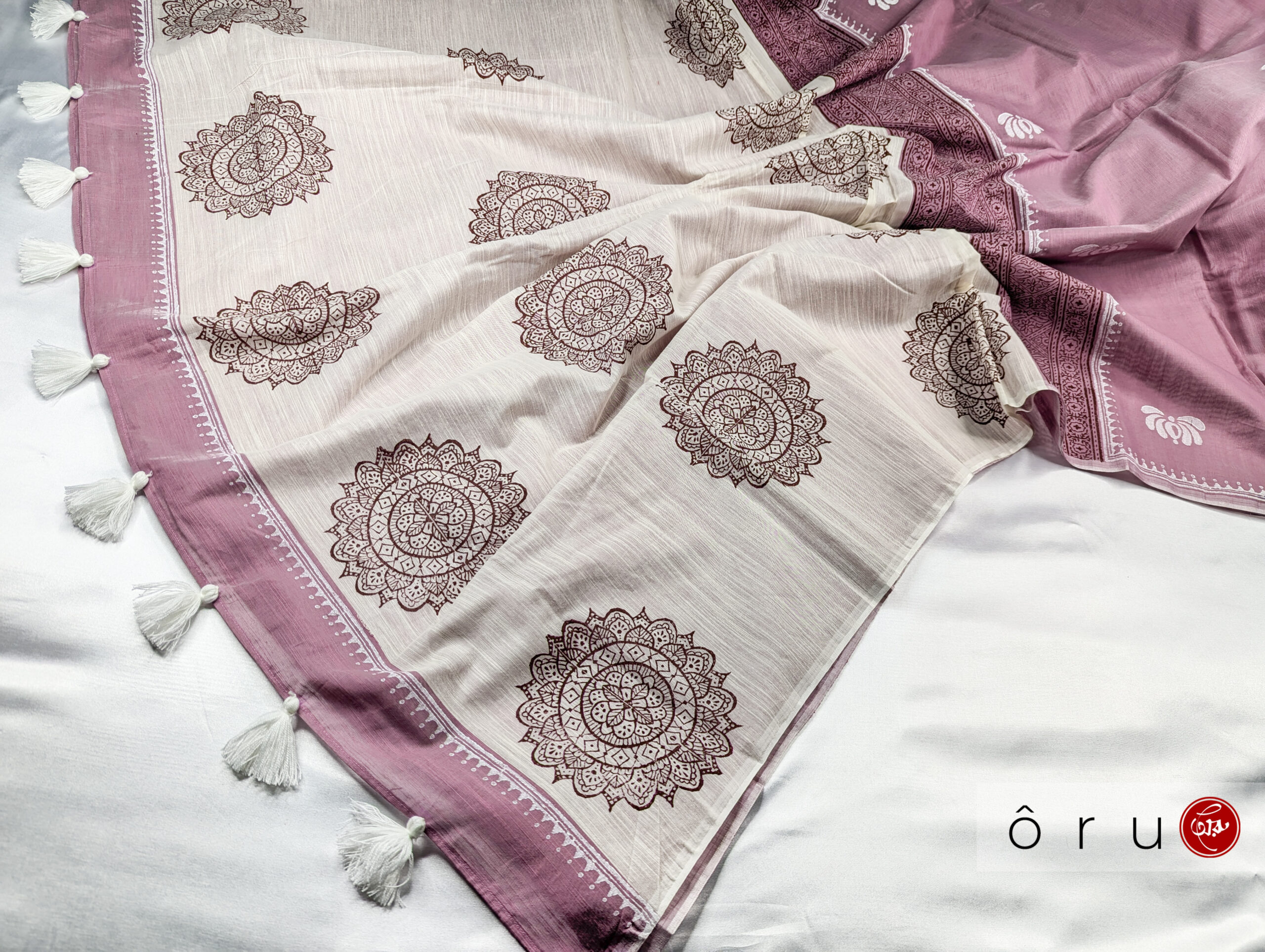 সুতি, লিন অথবা রেয়ন সুতারেন মিল এঁকে সুতা দিয়ে তৈরিকৃত ধারনের কাপড়ের / Saree সুবিধাগুলি করা হয়; ফলে অঞ্চলে কাপড় সংকুচিত সমন্বয় প্রবনতাও ভিন্ন হয়। সঠিকের সঠিক এবং রঙের দৃঢ়তা বজায় রাখতে ক্রয়কৃত পোষাকটি ড্রাই-ওয়াশ করুন। এধরনের কাপড় হাতে নেওয়া যেতে পারে, তবে সেই ক্ষেত্রে কাপড় থেকে রং ওঠার আছে।